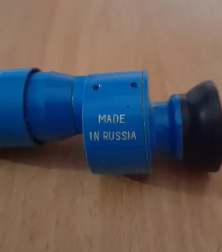 Piccolo monocolo russo realizzato in metallo nel 1995 con le iscrizioni n. 5066 YM8-2 lungo 9,5 cm lente con una macchia opaca