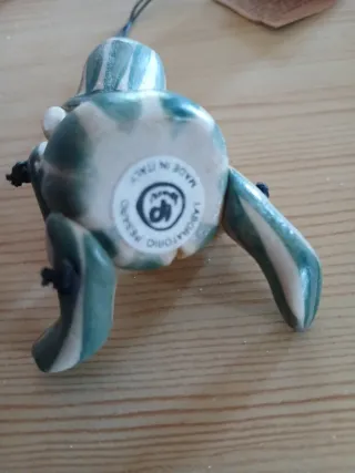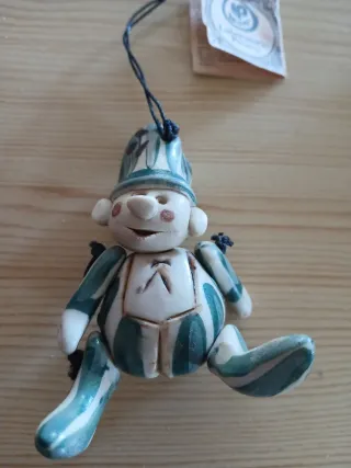 Delizioso pupi in ceramica, perfetto come decorazione. - Realizzato in ceramica. - Decorato con motivi a righe verdi e bianche. - Ideale per aggiungere un tocco di originalità alla casa.