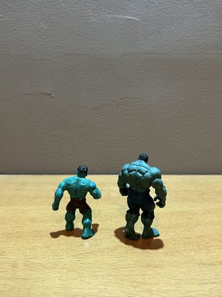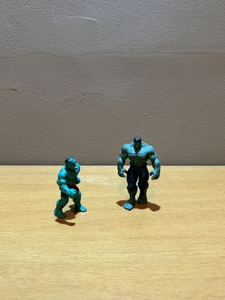 Due statuette del personaggio Hulk. - Una statuetta di Hulk più grande. - Una statuetta di Hulk più piccola.