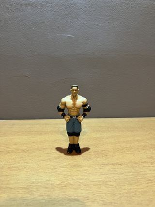 Action figure di John Cena, un wrestler famoso. - Dettagli muscolosi. - Indossa pantaloncini neri e scarpe da ginnastica. - Polsini neri sui bicipiti e sui polsi.