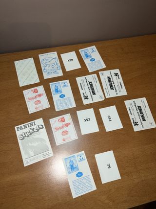 Lotto di figurine vintage Panini. - Include figurine della serie Jonathan. - Include figurine della serie Stranamore. - Alcune figurine sono numerate (es. 330, 172, 97, 79, 352, 169, 201, 241). - Presente una figurina Capricorno. - Presente una bustina PANINI Stickers.