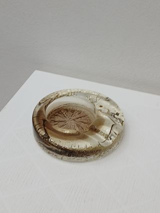Elegante posacenere vintage in vetro di Murano. Un pezzo unico che aggiunge un tocco di classe. - Materiale: Vetro di Murano - Design: Rotondo con dettagli lavorati - Colore: Trasparente con sfumature ambrate