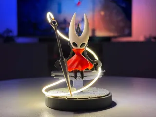 Action figure di Hornet con un filo LED che la circonda, creando un effetto luminoso unico. Perfetta per collezionisti e fan del gioco. - Design dettagliato del personaggio. - Filo LED integrato per illuminazione.