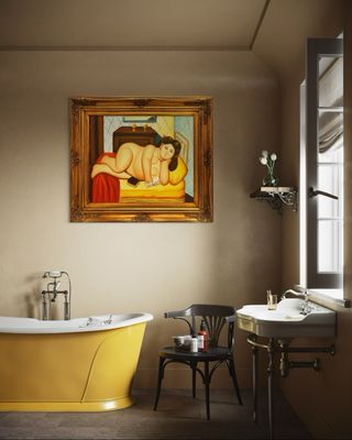 Quadro decorativo con cornice dorata, raffigurante una figura femminile. Imitazione Copia d’autore Botero Quadro fatto negli anni 70/80 - Stile classico. - Cornice in stile barocco.