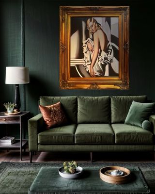 Opera d'arte raffigurante una figura femminile stile copia Tama De Lempicka - Soggetto: Donna con drappeggio. - Stile: Pittorico. Compreso di cornice finemente lavorata Prezzo trattwbile