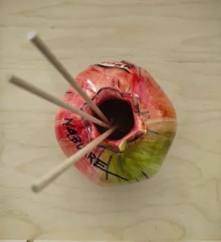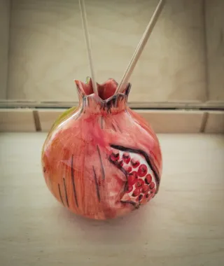 Bellissimo melograno in ceramica, perfetto come elemento decorativo. - Realizzato in ceramica. - Design a forma di melograno. - Colore rosso e dettagli dipinti.