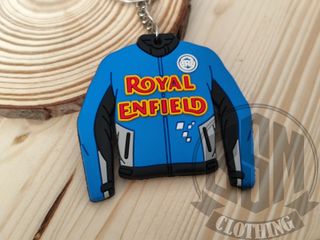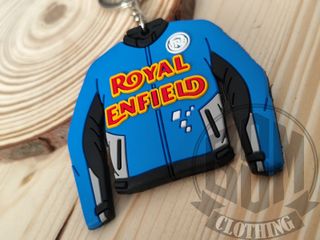 Vendo portachiavi Royal Enfield, a forma di giacca da moto, colore blu. Per gli appassionati del mondo Harley Davidson / Custom / Biker. MasLoco #bsmclothing #bsmharley #chicanolifestyle #harleydavidson