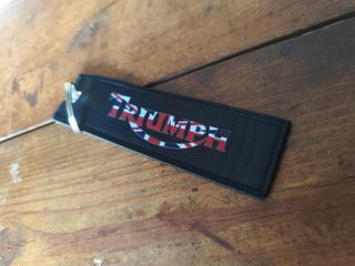 Vendo portachiavi in tessuto con logo Triumph. - Scritta I'd Rather Be Riding My Triumph ricamata. - Logo Triumph triangolare. - Anello portachiavi in metallo.. Per gli appassionati del mondo Harley Davidson / Custom / Biker. MasLoco #bsmclothing #bsmharley #chicanolifestyle #harleydavidson