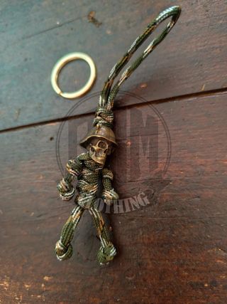 Portachiavi con un teschio stilizzato e cordino intrecciato in fantasia mimetica. - Dettaglio teschio in metallo. - Cordino in paracord intrecciato. - Anello portachiavi incluso. Per gli appassionati del mondo Harley Davidson / Custom / Biker. MasLoco #bsmclothing #bsmharley #chicanolifestyle #harleydavidson