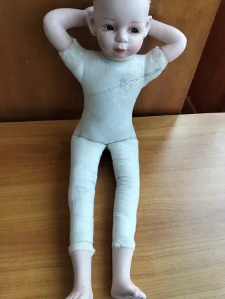 Bambola in porcellana bisquit, ideale per essere assemblata e personalizzata. - Materiale: porcellana bisquit. - Parti separate: gambe e testa , corpo e braccia già montati. Misura cm.30 Disponibili eventuali quantitativi di pezzi in bisquit per comporre bambole.