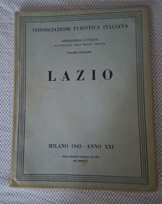 Volume undicesimo della serie Attraverso l'Italia del Touring Club Italiano, dedicato alla regione Lazio. 341 pagine illustrate - Illustrazione delle Regioni Italiane. - Edizione del 1943, Anno XXI. - Prima edizione impressa coi tipi del Bertieri.