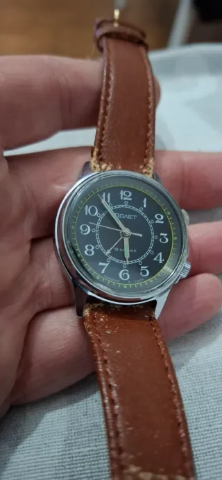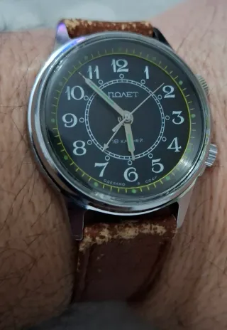 Orologio Poljot svegliarino meccanico vintage. L’orologio è perfettamente funzionante, tiene il tempo e la funzione sveglia è regolarmente operativa. Durante l’utilizzo mi è capitato che si fermasse temporaneamente, ma con una leggera movimentazione è ripartito immediatamente, senza ulteriori problemi. Come normale per orologi meccanici d’epoca, si consiglia una revisione/lubrificazione per un utilizzo ottimale nel lungo periodo, anche se attualmente è funzionante. Ottimo pezzo da collezione o da indossare.