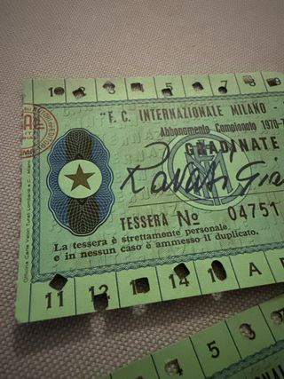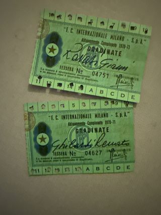 Tessere di abbonamento per la stagione calcistica 1970-71 del F.C. Internazionale. - Abbonamento Gradinate. - Stagione 1970-71. - Tessere personali. 30€cad