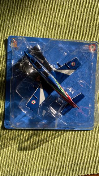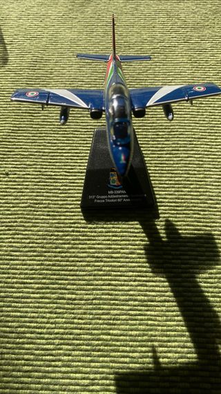 Modellino dell'aereo MB-339 PAN delle Frecce Tricolori, edizione 60° Anniversario. - Scala 1:72 - Base espositiva inclusa - Dettagli accurati - Aperto solo x foto.