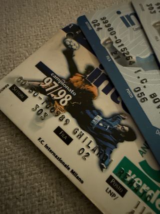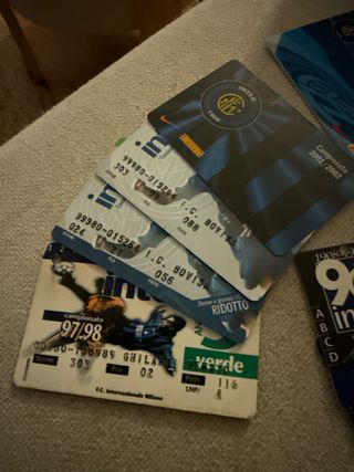 Lotto di tessere per partite di calcio dell'Inter. - Tessera Campionato 97/98 - Tessera Campionato 2001/2002 - Altre tessere Inter