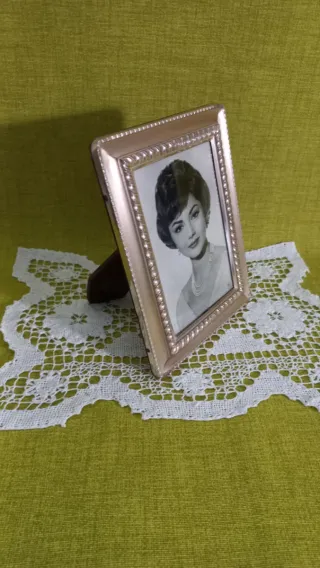 Elegante portafoto in argento 800, con finitura rosata, accoglie la foto di Sylva Koscina negli anni '50. - Design classico con bordo lavorato. - Ideale per fotografie in stile vintage. -vetro originale. -retro in legno scuro lucido. -essendo degli annunci '50 presenta imperfezioni davanti e dietro. -Ha piccole viti ai lati per tenere attaccata la cornice al retro in legno come si usava un tempo Misure in foto