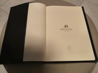 Quaderno con copertina rilegata in pelle. - Materiale: pelle - Tipo: rilegato Misure cm 23 x 15 Marca Mignon Paris Nuovo con la sua scatola
