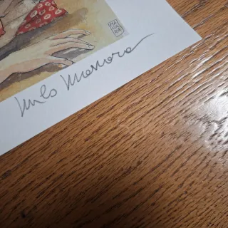 Omaggio a Katsushika Hokusai. Bellissima stampa su cartoncino pregiato, firmata in originale a matita dal maestro Milo Manara. Tratta dal volume Sensualitars, La Perla, 2001. Dimensioni: 29 x 38 cm circa. Prova d'Artista. In condizioni eccellenti come da foto