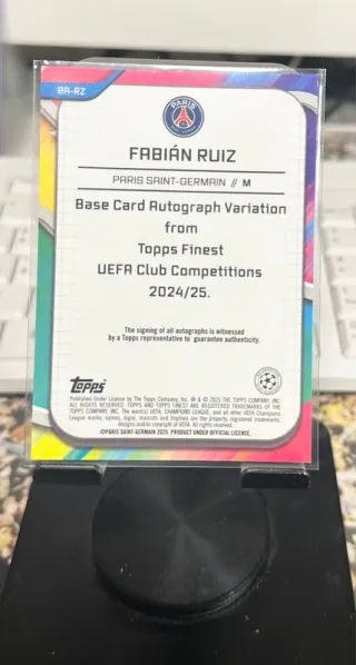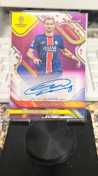Card autografata di Fabian Ruiz della Topps Finest 24/25, edizione limitata a 125 copie. - Autografo certificato Topps. - Giocatore: Fabian Ruiz. - Squadra: Paris Saint-Germain. - Serie: Champions League Finest.