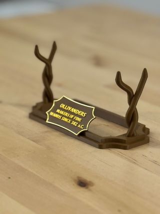 Supporto per bacchetta magica ispirato a Ollivanders, produttori di bacchette dal 382 a.C. Appassionati del mondo magico, completate la vostra collezione con questo esclusivo espositore per bacchette magiche, ispirato alla celebre bottega di Ollivanders. Realizzato con tecnologia di stampa 3D ad alta precisione, è il supporto ideale per dare il giusto rilievo alla bacchetta del vostro mago o strega preferito. 🌟 Perché questo espositore è imperdibile: - Design a forma di cornice con elementi a spirale. - Targhetta dorata con logo e scritta OLLIVANDERS MAKERS OF FINE WANDS SINCE 382 B.C.