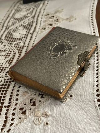 Prezioso libretto da borsetta o da appoggio: Manuale del cristiano, di inizio novecento di A. Bietti Editore, Milano, con preziosa copertina argentata e fermetto di chiusura (dimensioni: cm 9x 6,5x 1,5). Integro, in buono stato. - Chiusura a scatto. - Bordi delle pagine dorati.