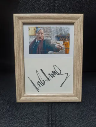 Autografo Mads Mikkelsen con foto incorniciata, firmato a mano durante incontro dal vivo. Foto a colori del personaggio con firma originale in pennarello nero, ben visibile e riconoscibile. L’oggetto è incorniciato e pronto da esporre. Misure: Cornice: 13 x 18 cm Foto interna proporzionata alla cornice Ottime condizioni. Oggetto da collezione ideale per fan e collezionisti di Hannibal, Casino Royale, Fantastic Beasts, Another Round. Foto prova dell'incontro per gli interessati all'acquisto.