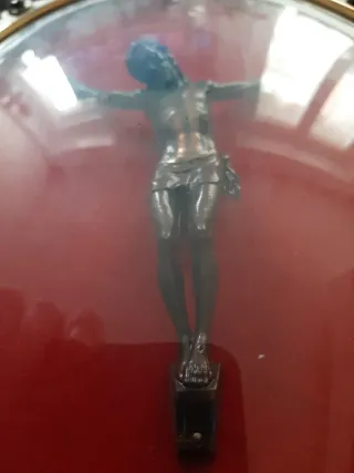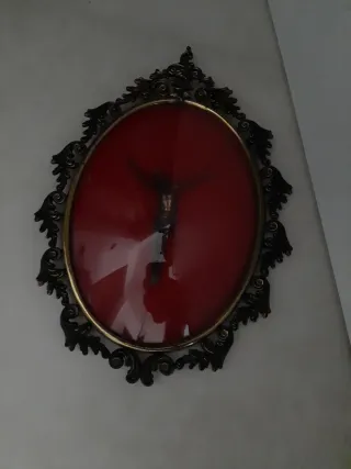 crocefisso in bronzo, racchiuso in una cornice ovale. - Materiale: bronzo. - Forma: ovale. - fondo feltro rosso misura ovale 33x23cm crocefisso 11x7cm Anni 60