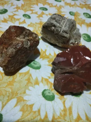 Tre minerali grezzi di diverse colorazioni e forme. No Spedizione con InPost Locker Point!!! Naturale grezze, non capisco che pietre sono perché non sono esperto. - Non spedisco con InPost Locker Point. - Minerale marrone rossastro lucido. - Minerale grigio con venature. - Minerale marrone chiaro con inclusioni.