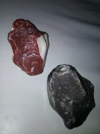Due minerali grezzi, ideali per collezionisti. Trovato nella soffitta della nonna questi due bellissimi pietre grezze. Non sono esperta in materia ma ho fatto delle ricerche risulta diaspro/selce. Pesato insieme gr 310. No spedizione con inPost Locker point. Idea per decorare oppure per gli amanti di minerali. - NO ! INPOST LOCKER POINT ! - Un minerale di colore rosso e bianco. - Un minerale di colore grigio scuro con inclusioni chiare.