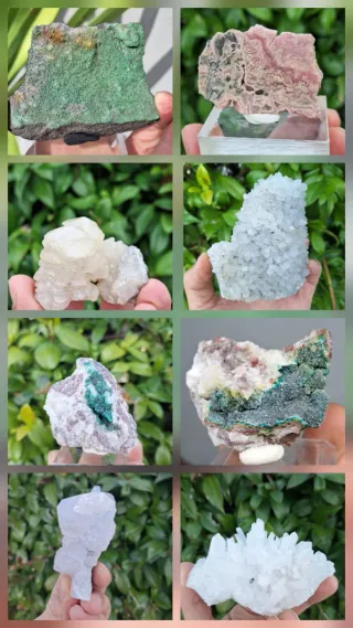 Lotto composto da 8 minerali grezzi, ideali per collezionisti o appassionati. - Varietà di rocce e cristalli. - Pezzi unici per arricchire la tua collezione.