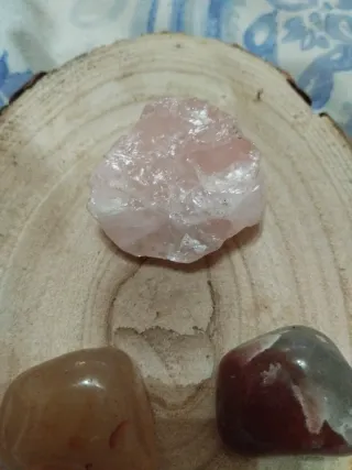 Lotto di tre quarzi rosa grezzi, del peso di circa 300 grammi. I lotti vengono realizzati.