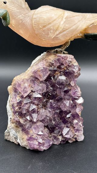 Uccello in Pietre Dure su Ametista Vintage