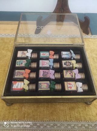 Antico portagioie con interno 12 mini profumi Borsari 1870 Extracten da collezione .. integro non usato varie fragranze ancora nella sua confezione originale..sono pieni le confezioni integro