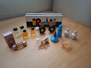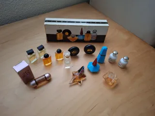 Grande lotteria di mini-profumi di marchi noti (Burberrys, Yves Saint Laurent, Escada, ecc.) con 21 miniature con scatola, 12 senza, oltre a 9 completamente vuote, di cui 5 con scatola e 4 senza. Include anche la confezione di mini-profumi 'Les Grands Parfums de France' di Charrier Parfums da circa 26cc/92fl.oz, nuova con 10 miniature. Tutti i mini-profumi (esclusi quelli nella confezione) sono usati/evaporati, con livelli di riempimento variabili. Ideale per decorare o riempire. NON separabile. Prezzo NON negoziabile. Spedizioni tramite Wallapop (solo utenti con voti), Correos o InPost da 5€.