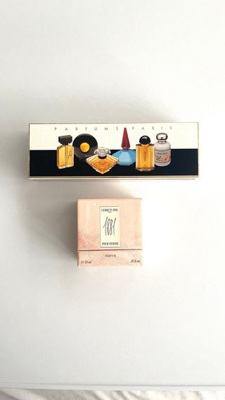 2 astucci composti da 7 miniature di profumi per collezionisti. Include varie fragranze iconiche. Nuovi senza segni di utilizzo. L'aroma potrebbe essere alterato, cosa che non conosco. Me li hanno regalati ma non li ho mai aperti. - Presentazione in scatola espositiva. - Ideale per collezionisti.