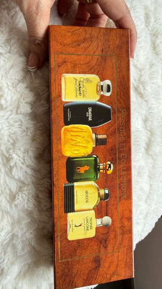 Set di miniature di profumi vari. - Varietà di fragranze in formato piccolo. - Ideale per collezionare o provare diversi aromi. - Presentato in una confezione con specchio.