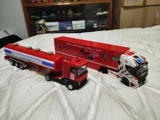 Chiedere per disponibilità e prezzi Modellini di camion con rimorchio, in scala 1/87, vendibili anche singolarmente, sono a disposizione per informazioni - Camion di diversi colori e modelli. - Ideali per collezionisti o per gioco.