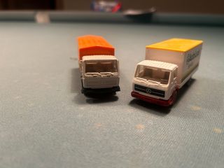 Due camion in miniatura, in scala