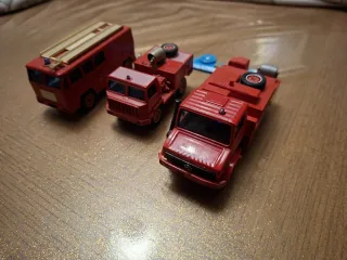 Set di 3 modellini di camion dei pompieri Solido. Solo un modello ha una ruota che potrebbe staccarsi, al momento tiene. - Modelli in scala. - Colore rosso. - Dettagli fedeli.