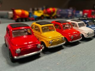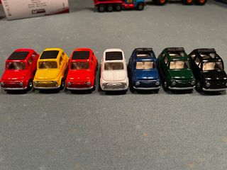 Lotto composto da sei modellini di Fiat 500 in diverse colorazioni. - Fiat 500 rossa (2) - Fiat 500 gialla (1) - Fiat 500 bianca (1) - Fiat 500 blu (1) - Fiat 500 verde (1) - Fiat 500 nera (1)