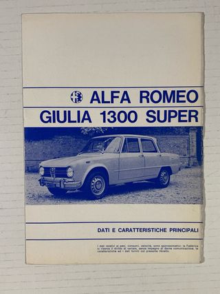 Depliant originale Alfa Romeo Giulia 1300 Super. - Dati e caratteristiche principali. - Testo in italiano.