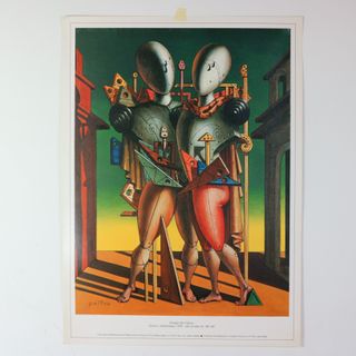 STAMPA SU CARTONCINO GIORGIO DE CHIRICO ETTORE E ANDROMACA 1950 GALLERIA MARESCALCHI Anni 70/80 Dimensioni 49x69 cm Buone condizioni generali, come da foto.