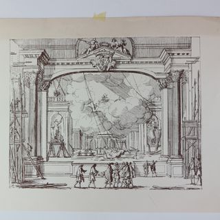 STAMPA BARTHELEMY FENIS LA COSTRUZIONE DEL TEATRO SPELTA 900 Dimensioni 49x40 cm Buone condizioni generali, come da foto.