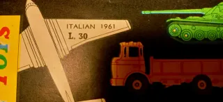 Vendo catalogo originale DINKY TOYS – anno 1961, RARISSIMA VERSIONE ITALIANA, materiale d’epoca autentico e molto ricercato dai collezionisti. 📘 Caratteristiche: Anno: 1961 Versione: Italiana (molto rara) Prezzo originale: L. 30 Editore: Meccano Pagine illustrate a colori Include l’intera gamma Dinky Toys e Dinky Supertoys dell’epoca 📌 Contenuti: Camion, gru, mezzi industriali Veicoli militari Auto, aerei e modelli speciali Tavole illustrate storiche (vedi foto reali) 📌 Condizioni: Originale al 100% – non ristampa Normali segni del tempo coerenti con l’età Carta integra, colori ancora ben conservati Oggetto reale.