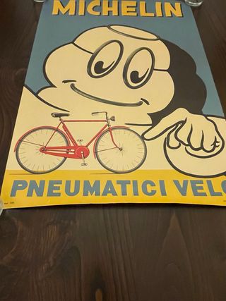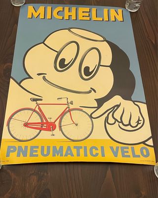 Poster vintage Michelin. - Illustrazione di Bibendum con bicicletta. - Scritta MICHELIN in alto. - Scritta PNEUMATICI VELO in basso.i ottime condizioni