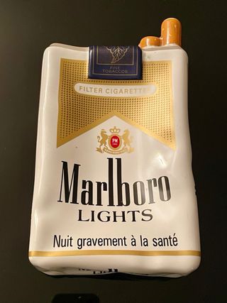 Posacenere o rendiresto a forma di pacchetto di sigarette Marlboro Lights. Posacenere o rendiresto a marca Marlboro da bar dí grande dimensioni. Peso e misura come da foto. Condizioni ottime come da foto.