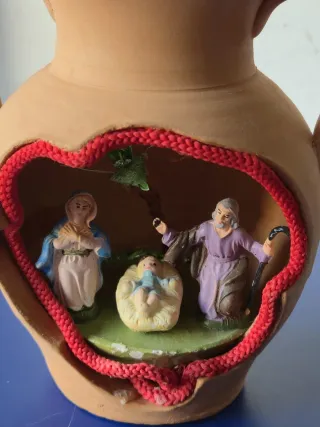 Come da titolo vendo Presepe Natività in Anfora di Creta. Buone condizioni, alcune imperfezioni come in foto, ma nulla che va a deturpare la bellezza dell'oggetto. Perfetto per arredamenti natalizio o per collezionisti. Misure: altezza 17cm, diametro circa 14cm