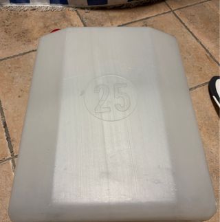 Tanica per acqua in plastica bianca, con manico e tappo rosso. - Capacità: 25 litri. - Materiale: plastica resistente. - Colore: bianco con tappo rosso.