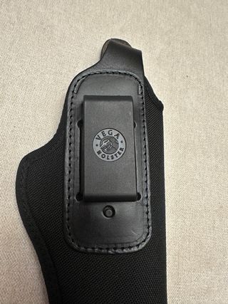 Fondina Vega Holster di colore nero. - Materiale in tessuto. - Clip per aggancio.