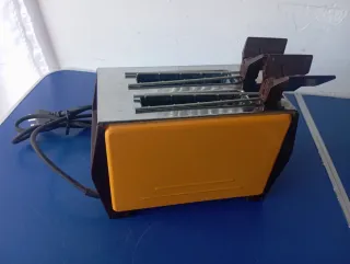 Tostapane d'epoca, un classico degli anni '70. Dettagli in metallo cromato. Il tostapane usato solo per prova , anche se funzionante viene venduto solo come pezzo da collezione non indicato come elettrodomestico. - Design retrò. - Materiali: metallo cromato . - Made in Italy.